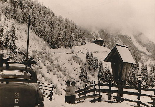 Zur Überquerung des 2239 Meter hoch gelegenen Pordoijochs in den Dolomiten war man die weite Strecke aus Hamburg angereist. Die 22 Kilometer lange Paß-straße hat es mit ihren 50 Kehren in sich. Das war für den in der britischen Zone zugelassenen Wagen (BH 35 für Hamburg-Stadt) ein ziemliches Stück Arbeit.
